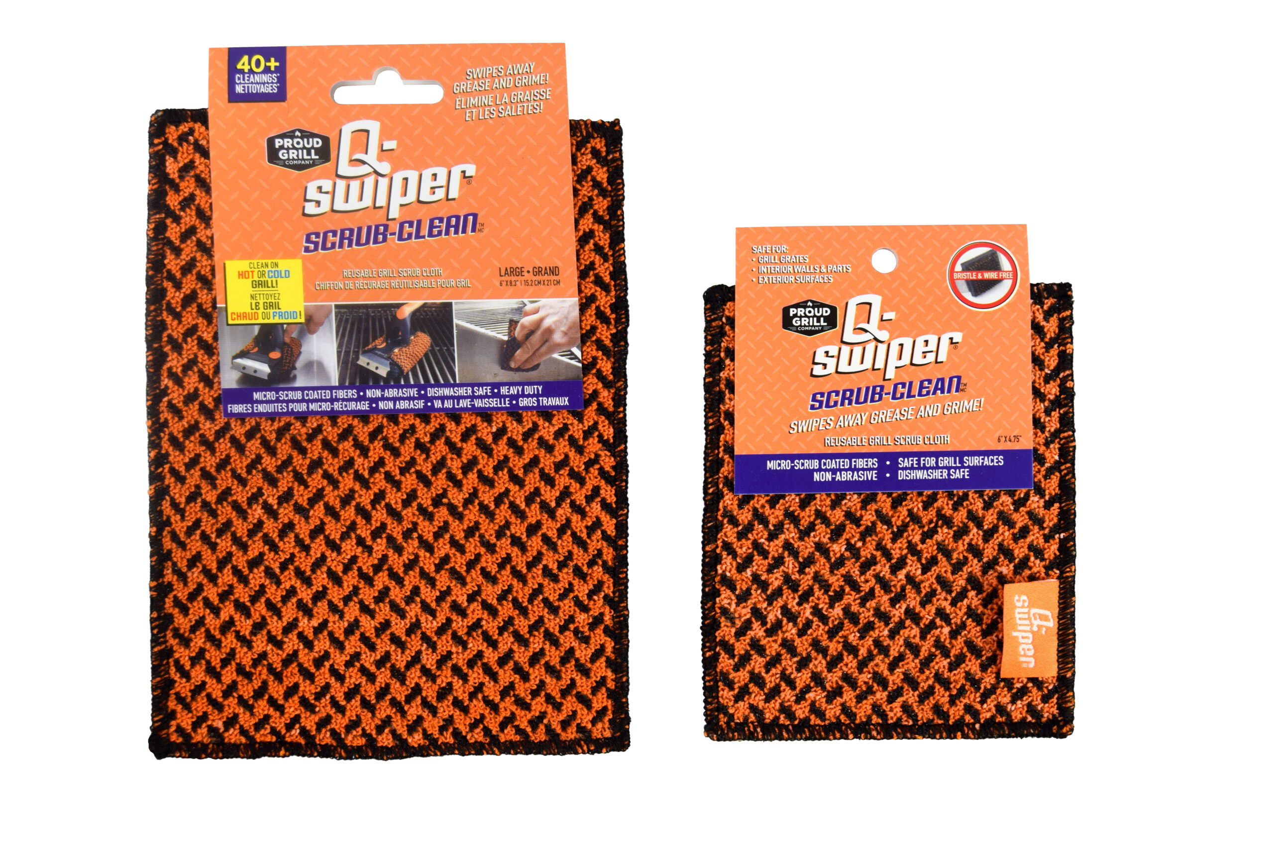 Transform your Grill & Kitchen Cleaning routine with our Heavy-Duty Q-Swiper Scrub-Clean Cloth, a versatile non-scratch cloth with hundreds of micro-scrub coated fibers. Perfect for cleaning exterior and interior grill surfaces, grill baskets, cast iron skillets and cookware. Use alone or combine with our Q-Swiper Grill Brush (large size) or 2-Minute Miracle Grill & Grate Cleaner for grill grate cleaning. Two sizes available.