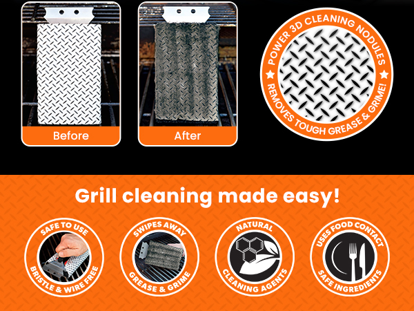 Bristle Free and Wire Free – Safe, no worries about ingesting potentially dangerous steel wire bristles. Safe to use on all grill grate types.
